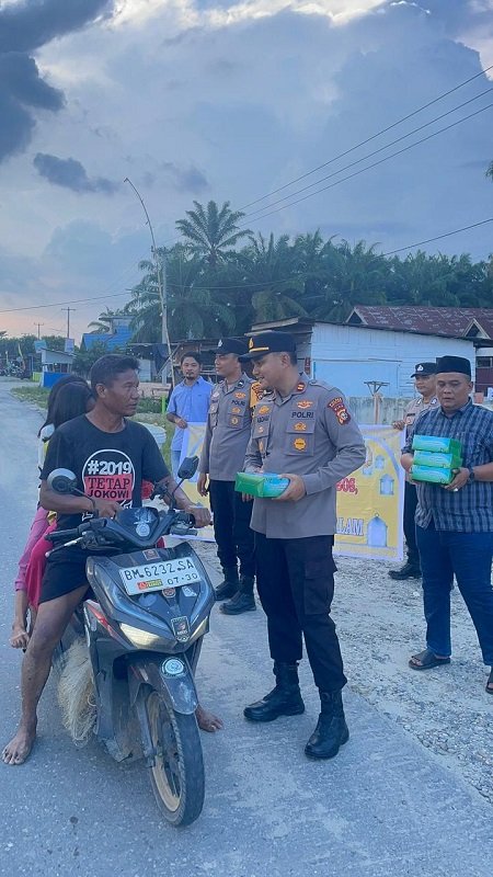Mengusung tema “Berbagi Takjil Bulan Ramadhan 1447 H / Tahun 2026”, kegiatan ini dipimpin langsung oleh Kapolsek Bonai Darussalam IPTU Abdau Wardiyoso, S.Tr.K., M.H, bersama sejumlah personel Polsek. Sebanyak 25 paket takjil berupa makanan dan snack dibagikan kepada masyarakat menjelang waktu berbuka puasa.