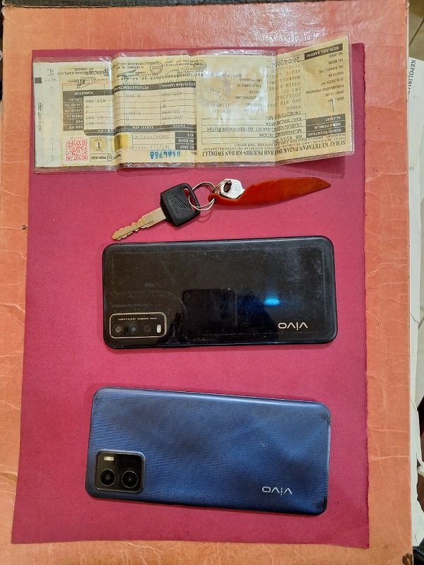 Polisi kemudian mengamankan R.S. untuk dimintai keterangan. Dalam pemeriksaan, R.S. mengakui telah melakukan pencurian sepeda motor dan handphone milik korban. Pelaku juga mengaku membuang handphone tersebut di belakang rumah kontrakan, dan petugas bersama korban berhasil menemukan barang tersebut sesuai pengakuan pelaku.