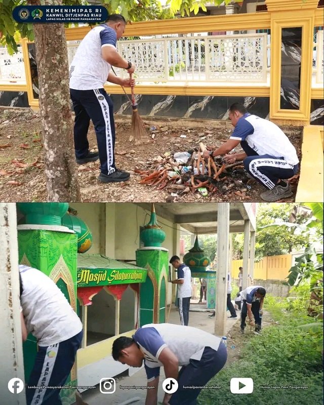PASIR PENGARAIAN, Nadipos.id – Dalam rangka memperingati Hari Bakti Pemasyarakatan ke-62, Lembaga Pemasyarakatan (Lapas) Kelas IIB Pasir Pengaraian melaksanakan kegiatan bakti sosial berupa bersih-bersih fasilitas umum di Masjid Silaturahim yang berada di sekitar lingkungan lapas, pada Kamis (9/4/2026).