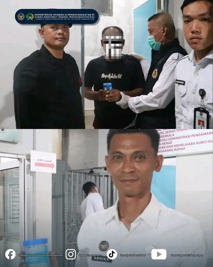 PASIR PENGARAIAN, Nadipos.id – Kantor Wilayah Direktorat Jenderal Pemasyarakatan (Ditjenpas) Riau melaksanakan tes urine terhadap petugas dan warga binaan di Lapas Kelas IIB pasir pengaraian pada Rabu malam (28/1/2026). Kegiatan ini merupakan bagian dari monitoring dan evaluasi (monev) rutin yang dilaksanakan oleh Kanwil Ditjenpas Riau.
