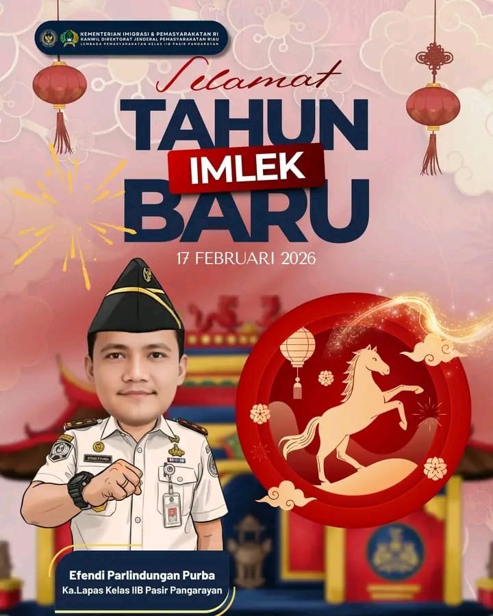 PASIR PENGARAIAN (ROHUL), Nadipos.id – Dalam semangat kebersamaan dan keberagaman, Keluarga Besar Lembaga Pemasyarakatan Kelas IIB Pasir Pengaraian menyampaikan ucapan Selamat Tahun Baru Imlek 2577 Kongzili yang jatuh pada Selasa, 17 Februari 2026.