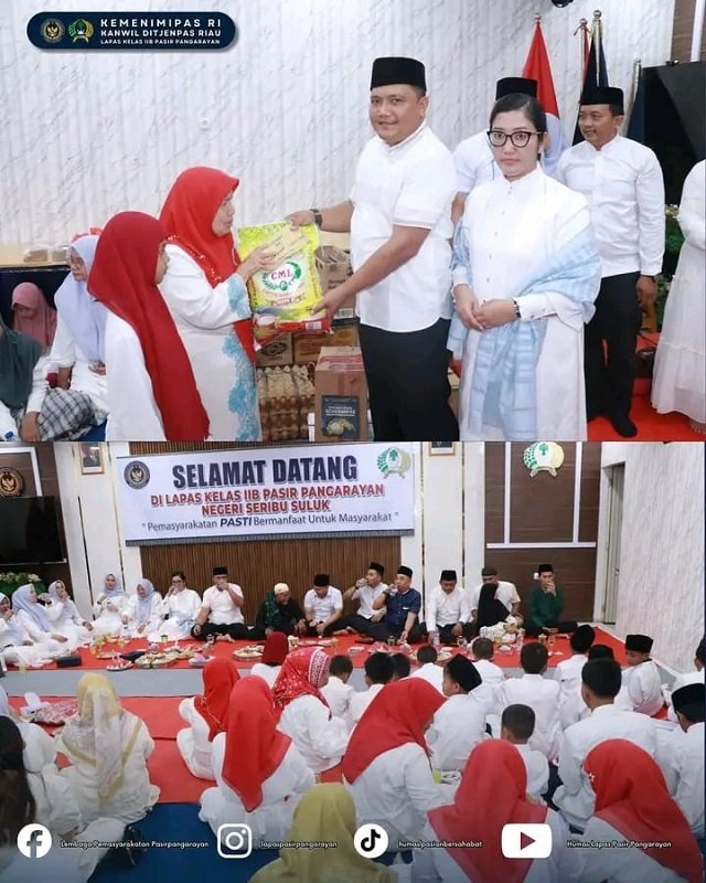 PASIR PENGARAIAN, Nadipos.id – Lembaga Pemasyarakatan (Lapas) Kelas IIB Pasir Pengaraian melaksanakan rangkaian kegiatan dalam rangka menyemarakkan bulan suci Ramadan 1447 Hijriah pada Sabtu (14/03/2026). Kegiatan diawali dengan rapat dinas pegawai, dilanjutkan dengan pembagian takjil kepada masyarakat sekitar, serta buka puasa bersama keluarga besar Lapas Pasir Pengaraian dan anak-anak dari Panti Asuhan Budi Mulya.