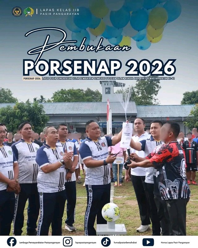 PASIR PENGARAIAN, hitsnasional.com – Lembaga Pemasyarakatan (Lapas) Kelas IIB Pasir Pengaraian menggelar kegiatan pembukaan Olimpiade L’Pasian dalam rangka memeriahkan Hari Bakti Pemasyarakatan ke-62 Tahun 2026 pada Kamis (9/4/2026). Kegiatan yang digelar di lapangan Lapas ini berlangsung meriah dan penuh semangat kebersamaan.