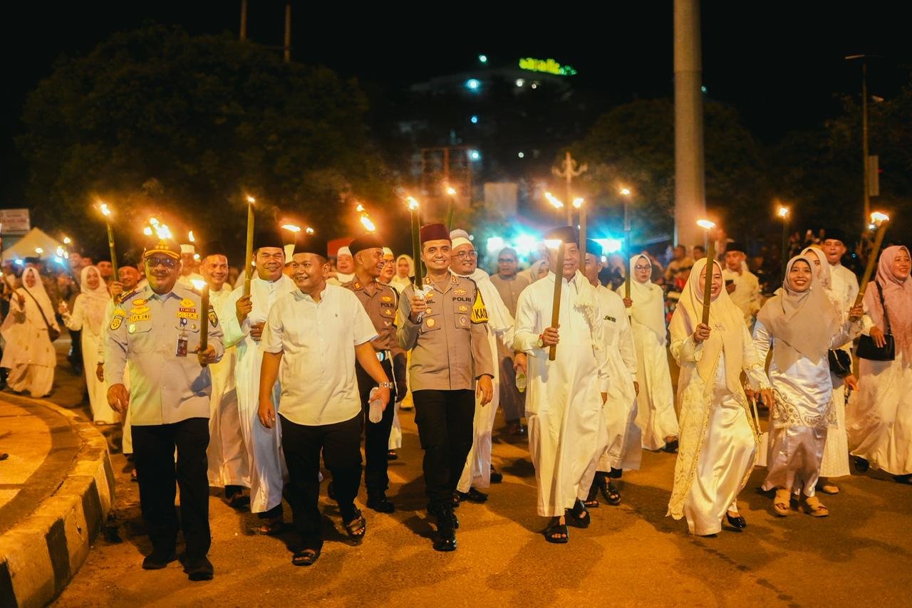 “Pawai obor ini adalah upaya kita menghidupkan kembali tradisi lama yang sarat makna. Obor yang menyala bukan sekadar api, tetapi simbol cahaya keimanan, persatuan, dan harapan dalam menyambut hari kemenangan,” ujarnya.