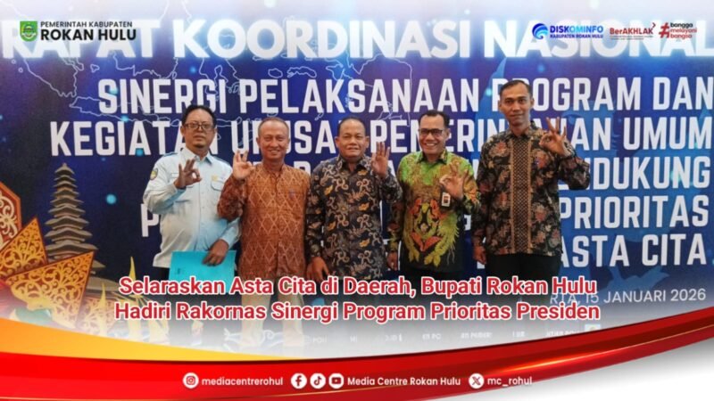 JAKARTA, Nadipos.id Selaraskan Asta Cita di Daerah, Bupati Rokan Hulu Hadiri Rakornas Sinergi Program Prioritas Presiden Pemerintah Kabupaten Rokan Hulu (Rohul) menyatakan kesiapannya untuk mendukung penuh akselerasi 17 Program Prioritas Presiden dan visi Asta Cita. Hal ini ditegaskan oleh Bupati Rokan Hulu, Anton, ST, MM, saat menghadiri Rapat Koordinasi Nasional (Rakornas) Sinergi Pelaksanaan Program dan Kegiatan Urusan Pemerintahan Umum di Ballroom Hotel Pullman Jakarta Central Park, Kamis (15/1/2026).
